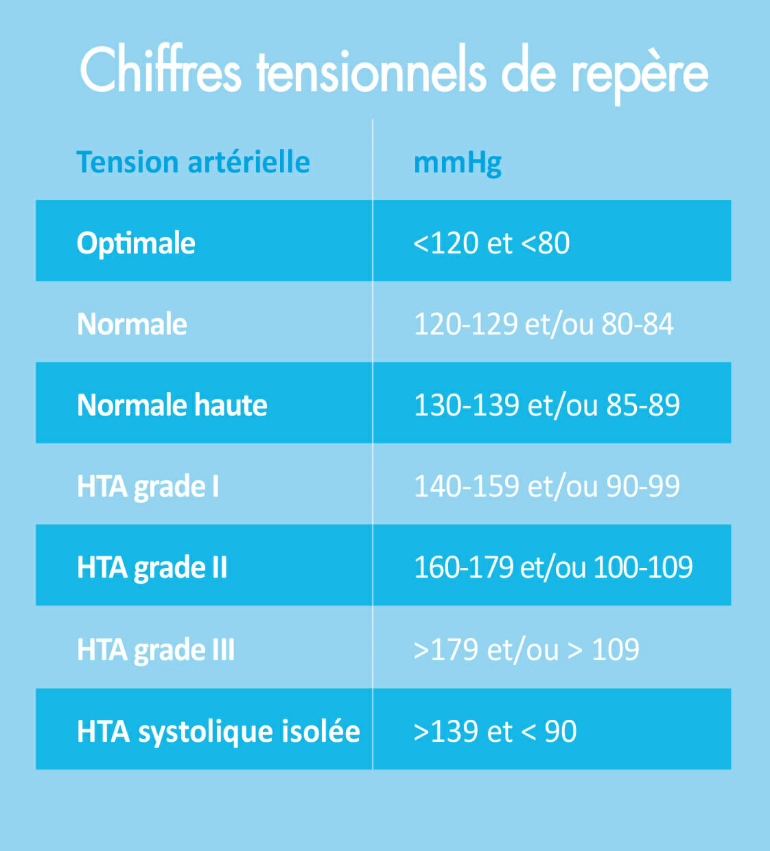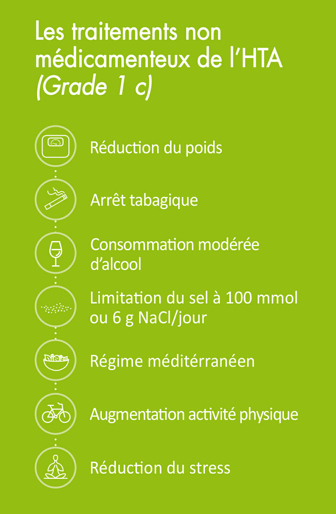 Tension < 140/90 mmHg (mesure conventionnelle) (GRADE 1B).