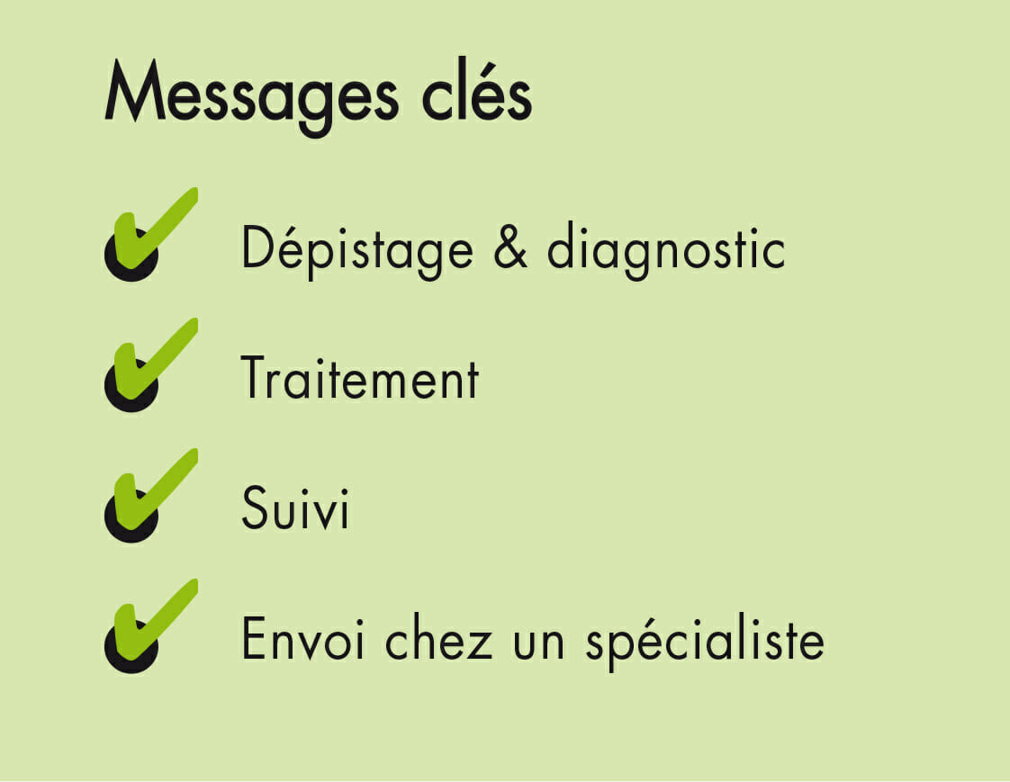 Il est conseillé de demander l’avis d’un spécialiste dans les cas suivants (GRADE 1C) :