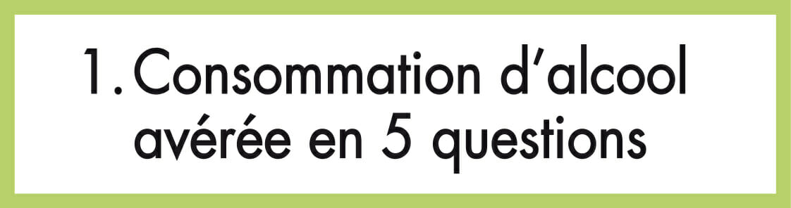 Fast Alcohol Consumption Evaluation (2006) est un hétéro-questionnaire validé (avec une sensibilité et spécificité comparables à l’AUDIT) pour classer le patient selon un risque faible ou nul, une consommation excessive probable ou une dépendance probable.
