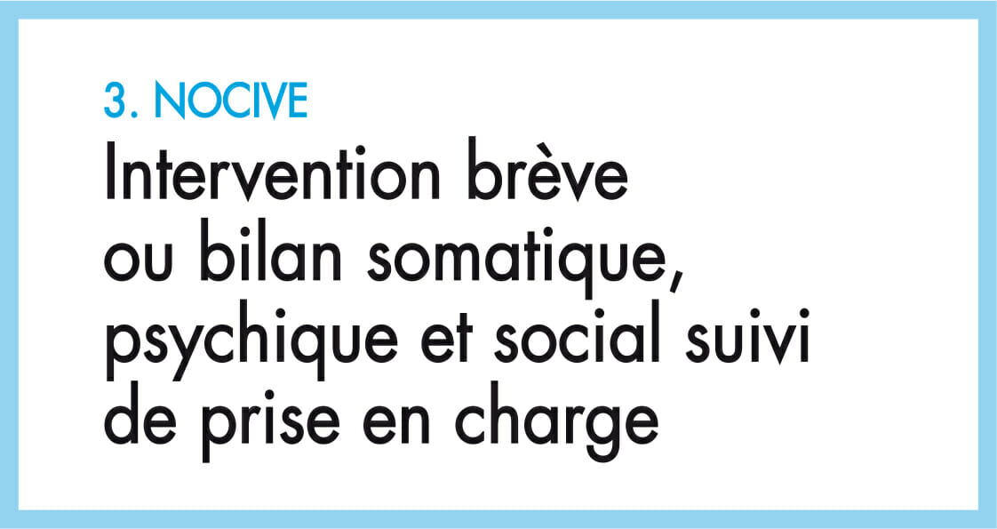 Cet outil développé par la Haute Autorité de la Santé (France) facilite le repérage précoce accompagné d’une intervention brève de manière à constituer une réponse individuelle à des consommations à risque de dommages physiques, psychiques ou sociaux.